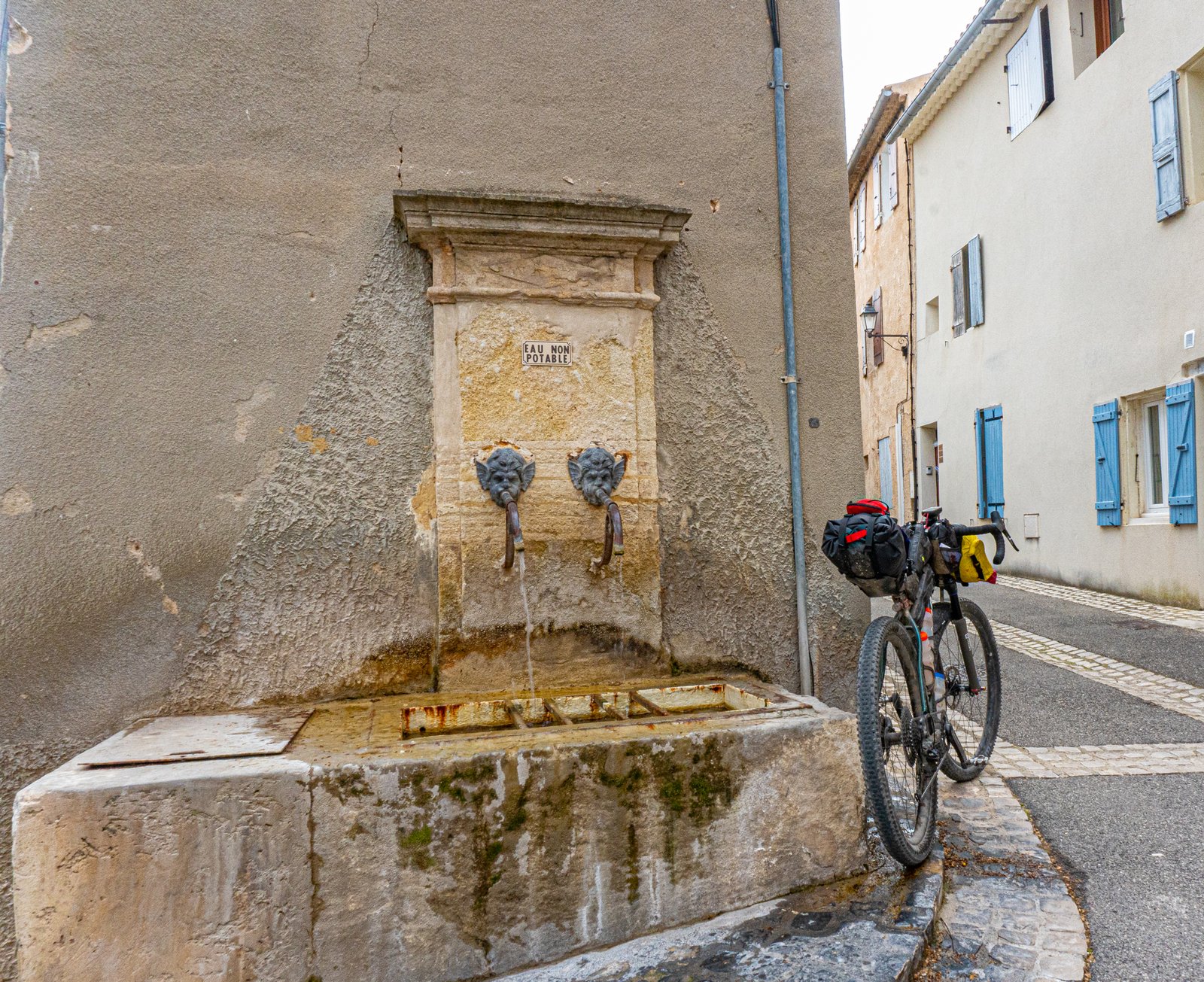 Used to the bustle of cyclists and tourists here, it was certainly an odd experience, virtually every town centre establishment closed. There is a water tap outside the la Promenade restaurant should you pass through out of hours and a large supermarket 1.5km away at the top end of town which is open into the evening. Although it’s only 55km to the next refuel spot, the tech terrain is a fun ride, but not fast going, so you might want to time your arrival to Sault as a main refuel stop.