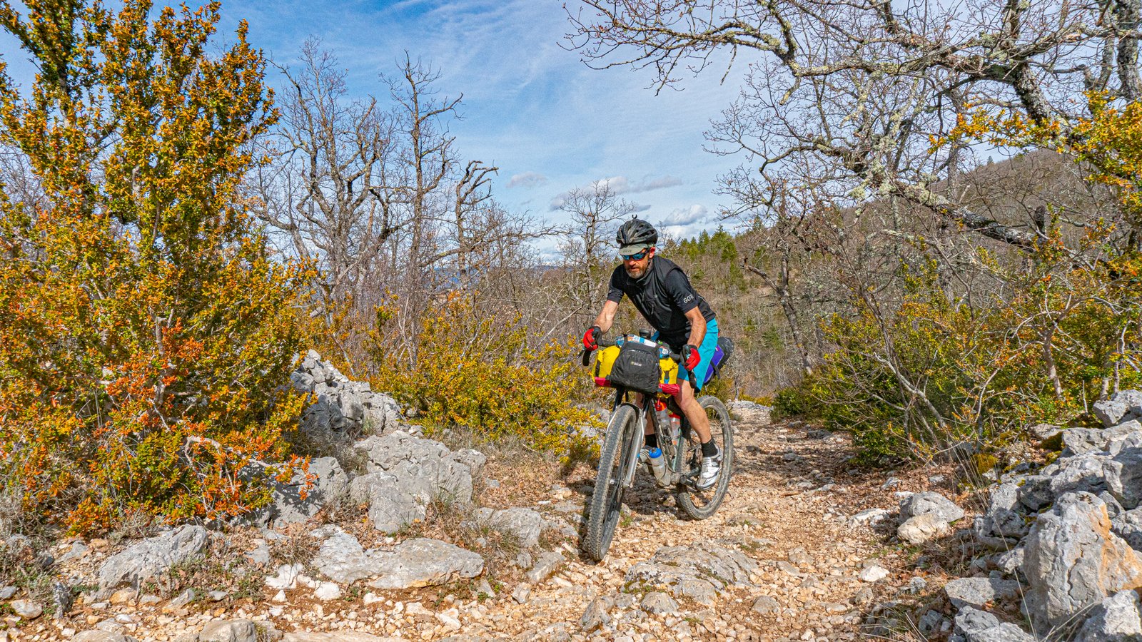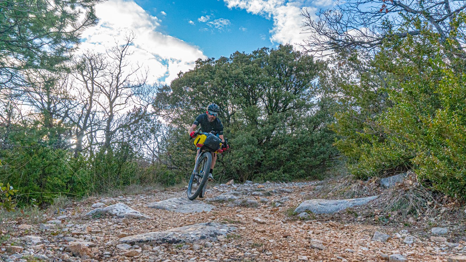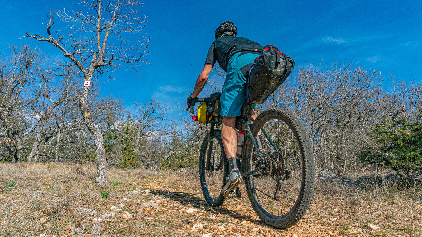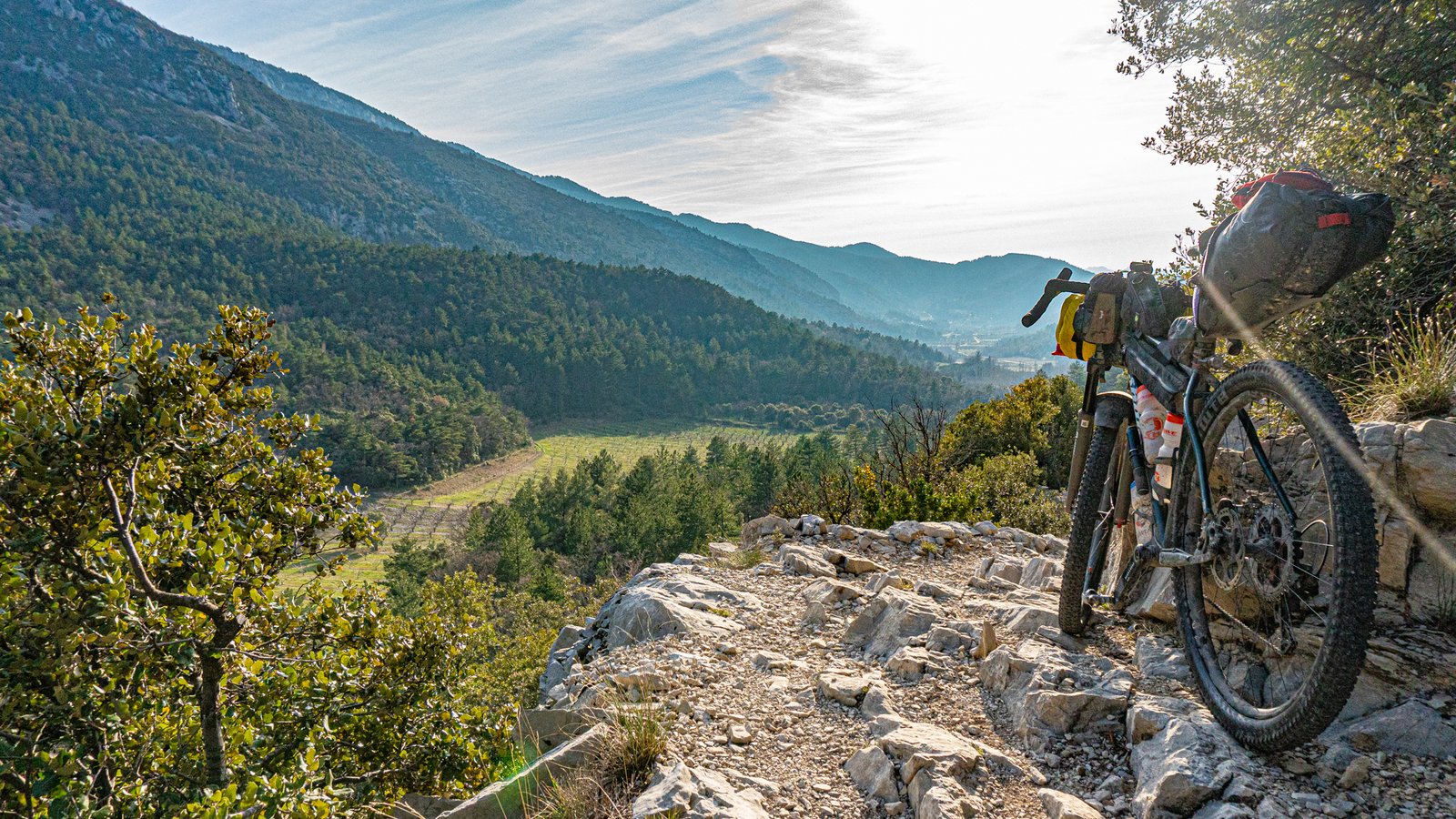 A short climb back up through the woods led to another fast, fun singletrack descent to St Léger du Ventoux. There is an auberge here and is the only civilisation you’ll come across for a significant time, should you need assistance in this more remote section to Malaucène. This route needs to be planned in terms of time. Although distances between towns aren’t far, the terrain in the first 200km is mainly technical, both up and down, with a significant amount of singletrack and climbing. It’s superb riding, but loaded with gear, progress isn’t going to be fast.